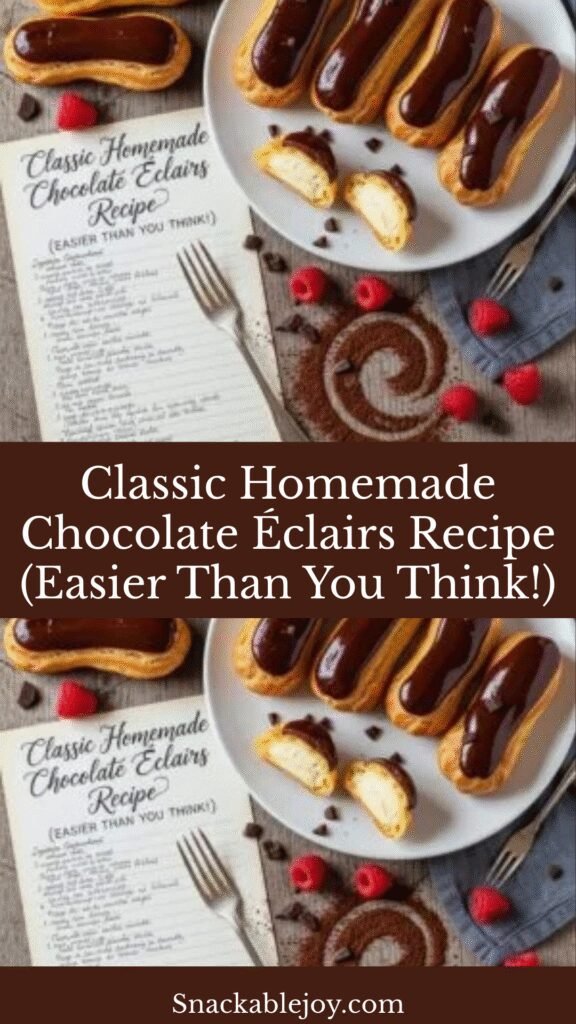 I’d love to hear how your éclairs turn out! Leave a comment below with your results, any questions, or your favorite flavor variations. And if you loved this recipe, please share it on Pinterest to help other home bakers discover that éclairs are totally achievable. Don’t forget to pin this to your dessert board so you can find it again when éclair cravings strike!