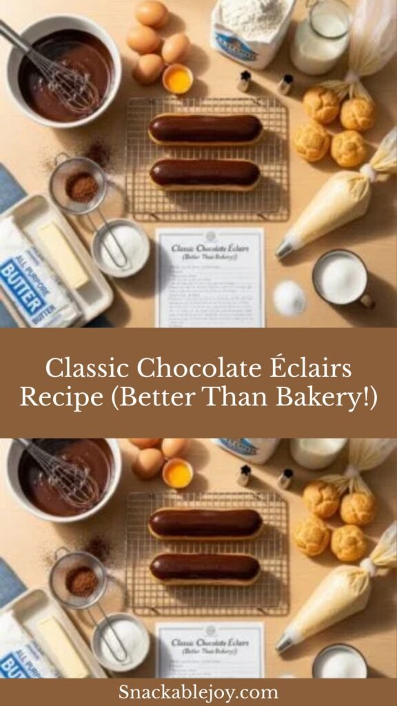 Now it’s your turn to shine! I’d love to hear about your éclair-making adventures. Did you try a flavor variation? How did your first batch turn out? Share your results, questions, and photos in the comments below—I read every single one and love seeing your creations! Don’t forget to rate this recipe if you try it, and please pin it to your favorite Pinterest boards so you can find it easily for your next baking project. Your friends and family are going to be so impressed when you serve these gorgeous homemade éclairs! Happy baking! 🥐✨