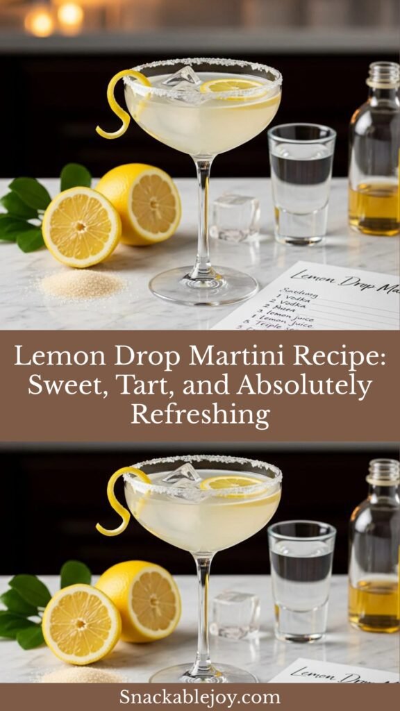 The lemon drop martini is a brilliantly refreshing, perfectly balanced cocktail that combines the bright tartness of fresh lemon juice with the smooth sweetness of vodka and simple syrup, all served in an elegant sugar-rimmed martini glass! This iconic lemon drop cocktail features a gorgeous pale yellow color, a crystalline sugar rim that adds both visual appeal and sweet contrast, and a flavor profile that’s simultaneously tangy and sweet—like your favorite childhood lemon candy but sophisticated and grown-up. The combination of fresh citrus with quality vodka creates the perfect “sweet-tart” cocktail that’s refreshing, elegant, and dangerously easy to drink. This easy lemon drop martini recipe is perfect for countless occasions: serve it at summer parties and outdoor gatherings when you need something cooling and bright, make it for girls’ night when you want something fun and flavorful, mix up a batch for brunch cocktails alongside mimosas and bellinis, offer it at dinner parties as a sophisticated pre-dinner drink, enjoy it on warm evenings when you’re craving something light and refreshing, or simply make one when you want a cocktail that tastes like sunshine in a glass. The beauty of this homemade lemon drop martini lies in its remarkable simplicity—it requires just four basic ingredients, comes together in under 5 minutes, uses equipment you probably already have, and delivers restaurant-quality results that taste like they came from a high-end cocktail bar. Whether you’re a citrus lover who enjoys cocktails, a home bartender looking to master classic drinks, someone who loves entertaining with crowd-pleasing beverages, or simply anyone who believes lemons make everything better, this lemon drop martini recipe delivers incredible flavor, beautiful presentation, perfect balance, and pure refreshing deliciousness that makes it one of the most beloved modern classic cocktails!