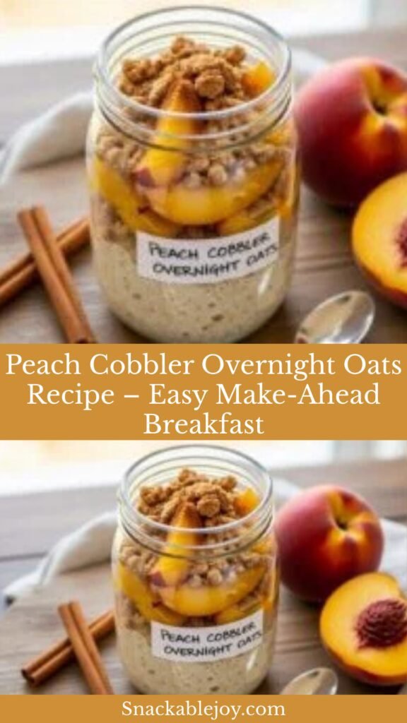 Perfect for busy mornings, lazy weekends, or anytime you need a grab-and-go breakfast that doesn’t compromise on flavor, these overnight oats are a game-changer. Serve them cold straight from the fridge, or warm them up for a cozy start to your day. They’re ideal for meal prepping on Sunday evenings, packing for work lunches, or even enjoying as a healthy afternoon snack. Whether you’re feeding a family or just yourself, this recipe brings the nostalgia of grandma’s peach cobbler right into your breakfast bowl.
