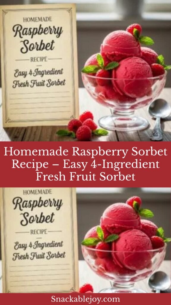 Ready to make your kitchen smell like a raspberry field in summer? Grab your raspberries and get started! I’d love to hear how your sorbet turns out—leave a comment below sharing your experience, any creative variations you tried, or questions you have. And if this recipe brought a little summer sunshine to your table, please give it a five-star rating and save it to your Pinterest dessert board so you can find it again easily!